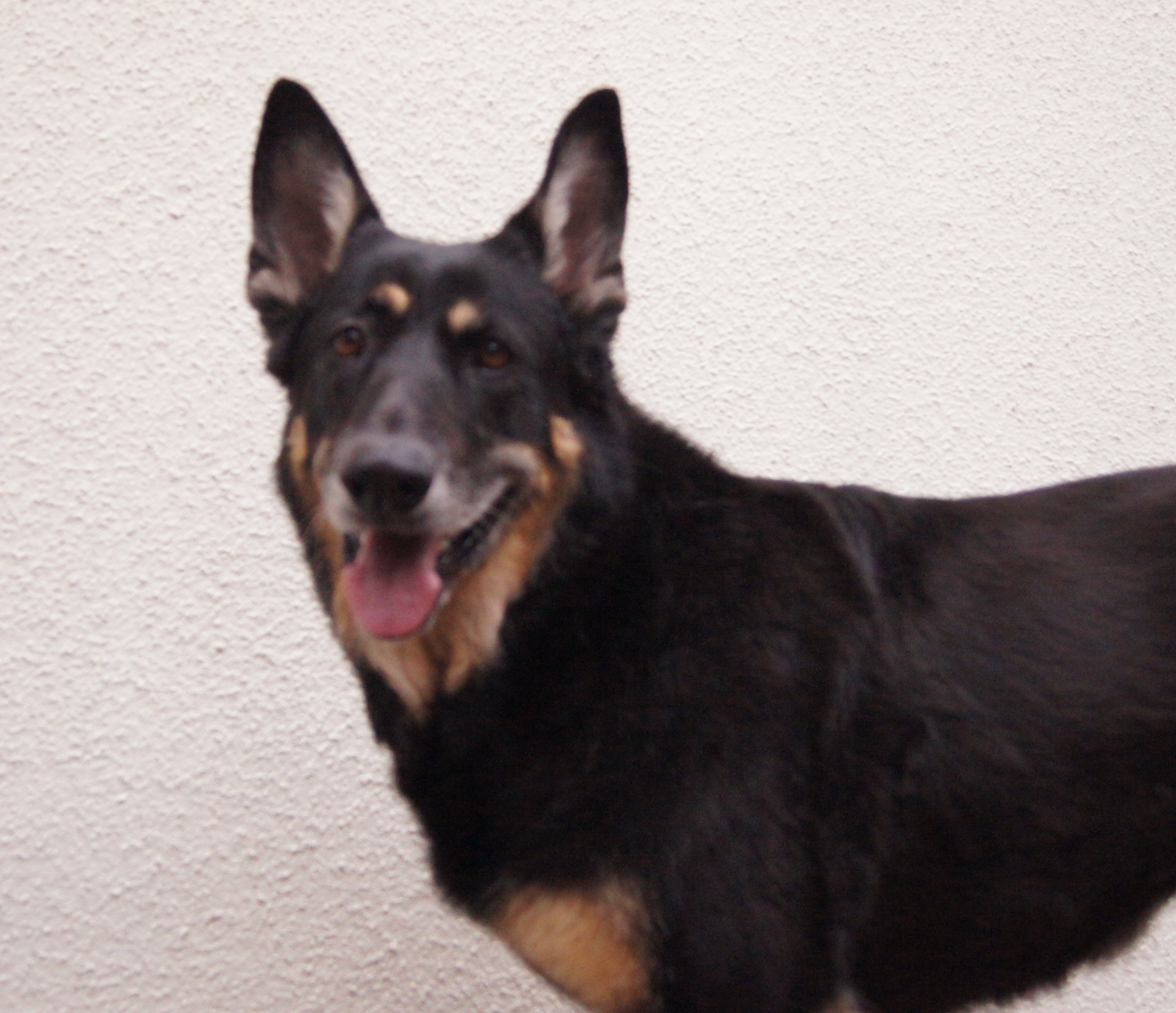 KoKo, his grandparents’ mostly black German shepherd, nuzzled Aidan’s arm.